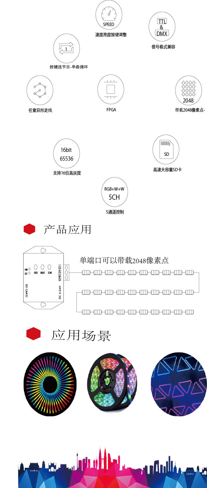 3,单端口TTL可带2048点,DMX512可拓展点数