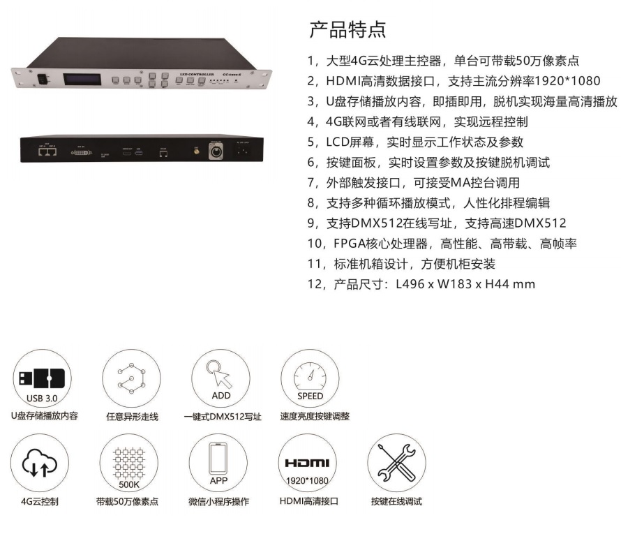 1.大型4G云处理主控器,单台可带载50万像素点