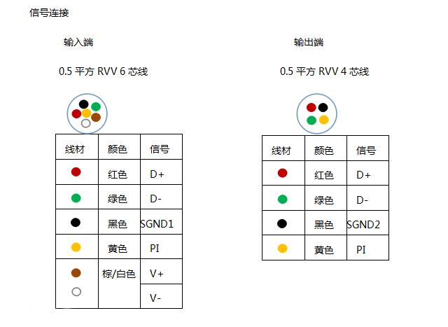 输入线 : 6芯0.5平方RVV 200mm