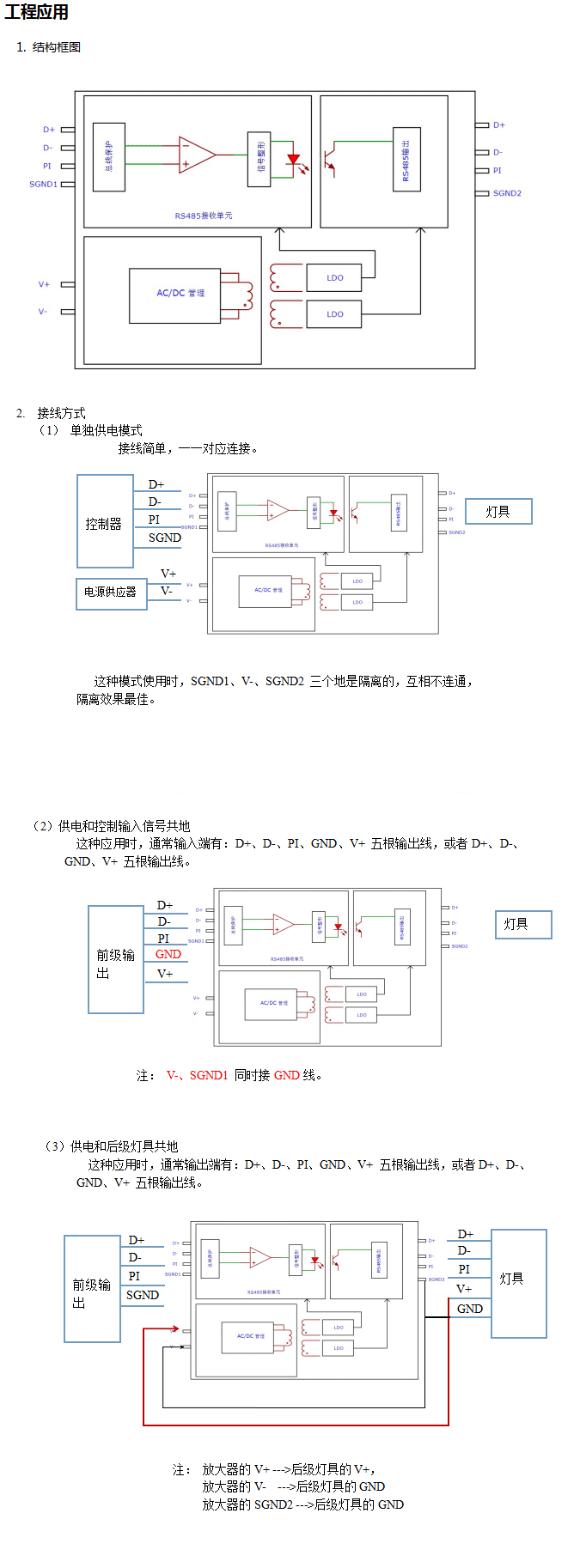 * 三组电源供电、互相隔离。隔离电压3000V