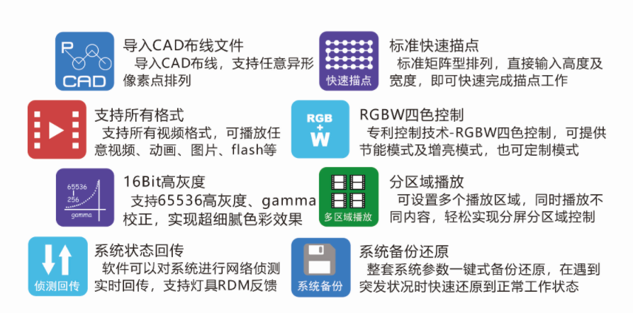 软件可以对系统进行网络侦测实时回传,支持灯具RDM反馈